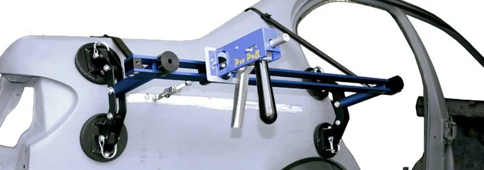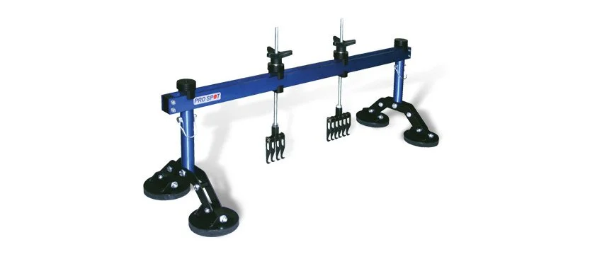 Designed for both aluminum and steel dent pulling, the Pull Bar features 4 and 6 jaw clamps and adjustable foot swivel pads for mounting both vertically and horizontally. It can also be used together with the Pro Pull for isolated dent pulling.