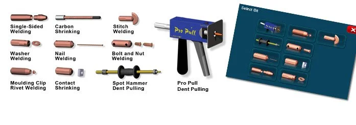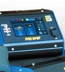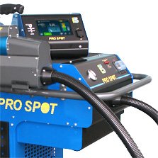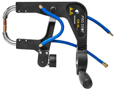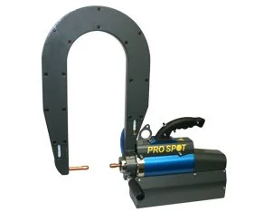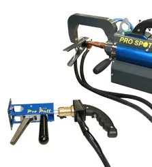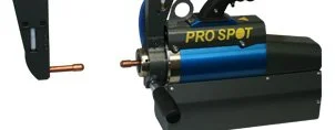 Pro Spot’s signature Spot Gun features a double-acting cylinder, and wide-spreading, self-aligning electrodes.