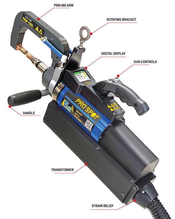 The new Pro Spot i5s Transformer Gun is lightweight, ergonomic, maneuverable, versatile and easy-to-use. It features unique digital display, as well as fingertip controls allowing technicians to view and change settings on the go without returning to the welder and disrupting welding process.