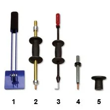 1. Lever Bar (optional) 2. Slide or Spot Hammer 3. Slide Hammer with Hook (optional) 4. Weld-on Shaft with Collar (optional) 5. Hammer Weight (optional)