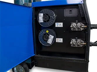 With three wire spools dedicated to three separate torches, the SP-5 DP is capable of easily switching between Steel, Aluminum, and Silicon Bronze welding materials. This gives the operator seamless transitions from material to material and increased work flow which leads to a faster cycle time.